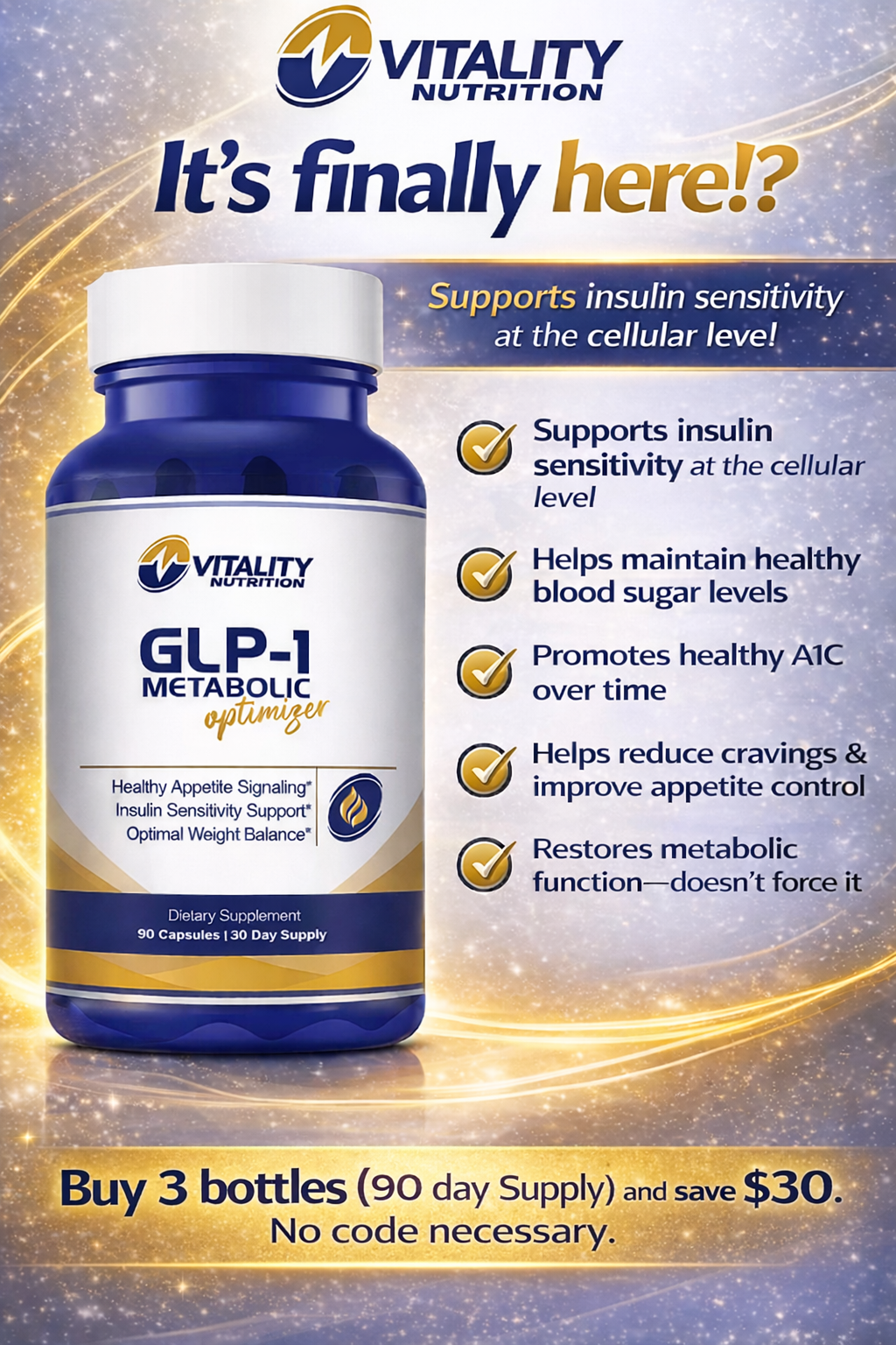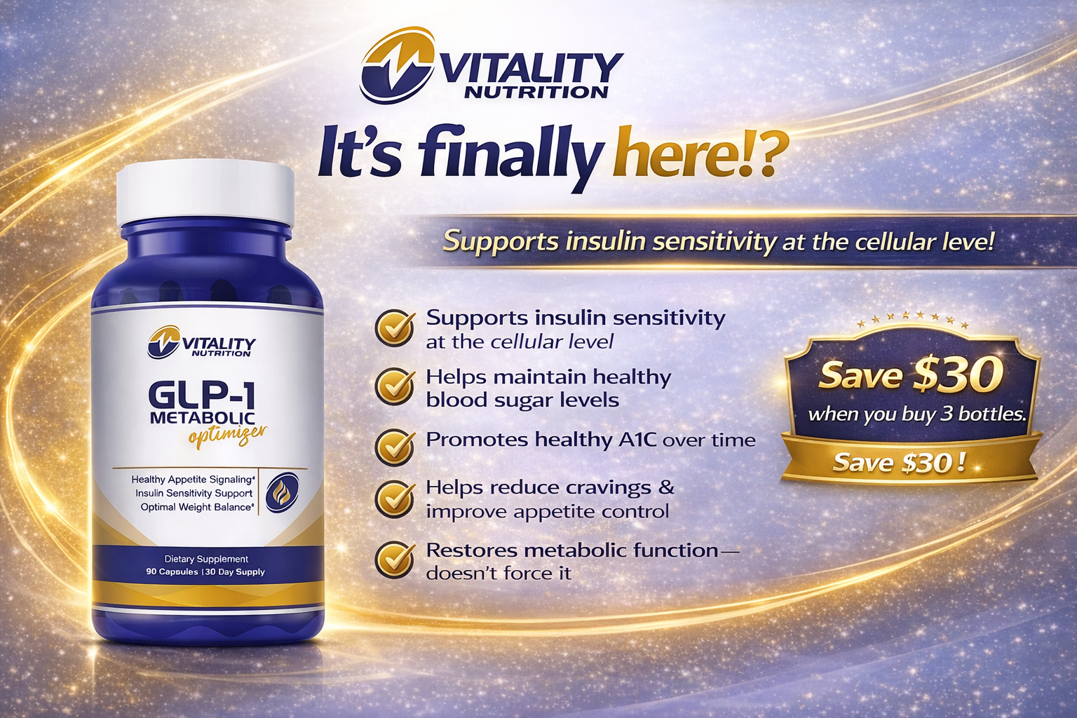 Add 3 to your cart and save $30 Vitality Nutrition – GLP-1 Metabolic Optimizer Healthy Appetite Signaling | Insulin Sensitivity Support | Optimal W...
