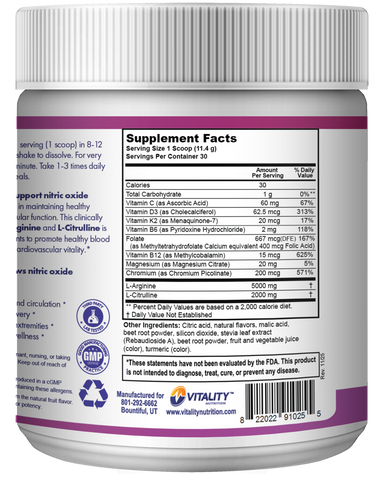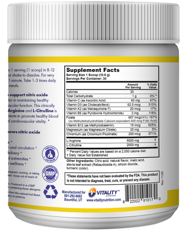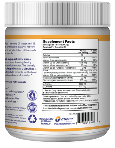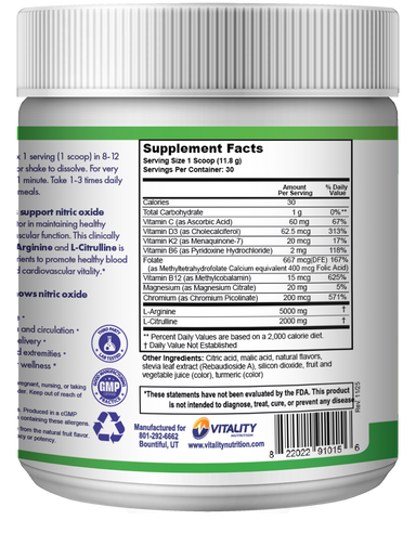 L-Arginine and L-Citrulline have been clinically shown to increase nitric oxide in the cardiovascular system. Published studies have shown that nit...
