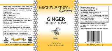 Description Mickelberry Gardens Ginger Honey Tonic is a traditional oxymel blend of raw Pacific Northwest honey, raw apple cider vinegar, and certi...