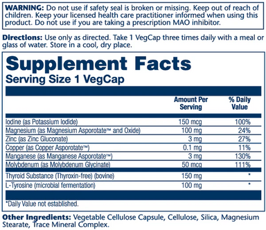 This powerful thyroid support supplement includes L-tyrosine, an amino acid that the thyroid gland may combine with iodine to make thyroid hormones...