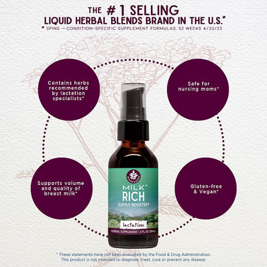 Description Amplify your milk supply with Milk Rich! This well-rounded formula helps nourish mom and supports mammary tissue and milk production. Y...