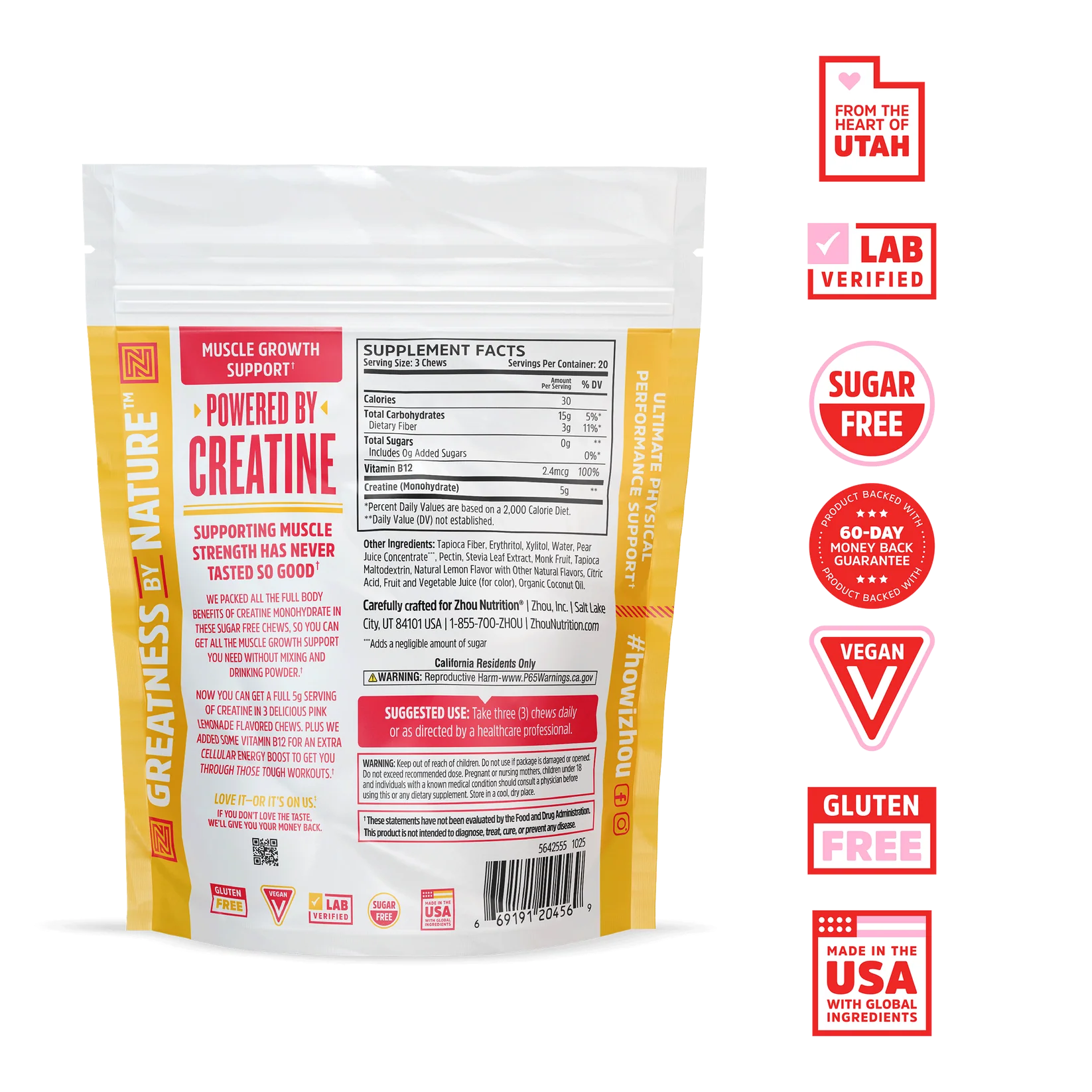 Creatine Gummies pack a big workout support punch in a small package that’s easy to stomach and comes in delicious, all-natural pink lemonade flavor.