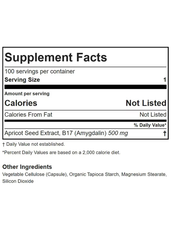 Amygdalin (Vitamin B17) – 500 mg per capsule: derived from apricot seeds, providing naturally occurring bioactive compounds found in over 1,200 botanical foods.*