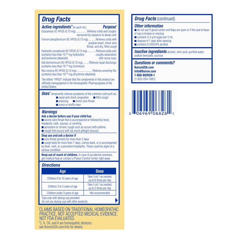 Chestal Kids Cold & Cough by Boiron conveniently targets both common cough and cold symptoms in one medicine. The homeopathic multi-symptom formula relieves nasal and chest congestion, dry fitful cough, sneezing, minor sore throat, and runny or stuffy nose.* The sweet-tasting syrup won’t interact with other medications and is recommended for children ages 3 and up.