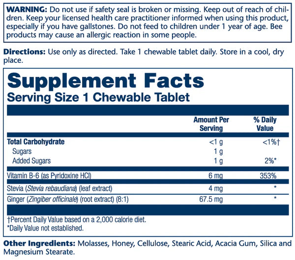 For thousands of years, ginger has been a favorite folk remedy, especially when it comes to supporting healthy digestion and soothing the stomach. Formulated to contain 67.5 mg of ginger root extract per chewable tablet, our powerful formula is designed to help provide support for feelings of comfort when traveling.