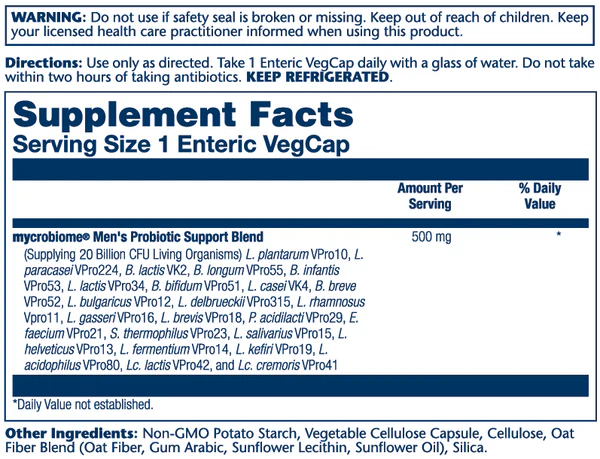 You know what they say: Microflora makes the man. Well, even if you've never heard that before, it's no secret that for everything from digestion to exercise recovery, an active, healthy, thriving microbiome is crucial for an active, healthy, thriving you. That's why our Mycrobiome Men's Formula includes a uniquely formulated Men's Support Blend for a man's distinct needs along with a Probiotic Support Blend for general health & wellbeing.