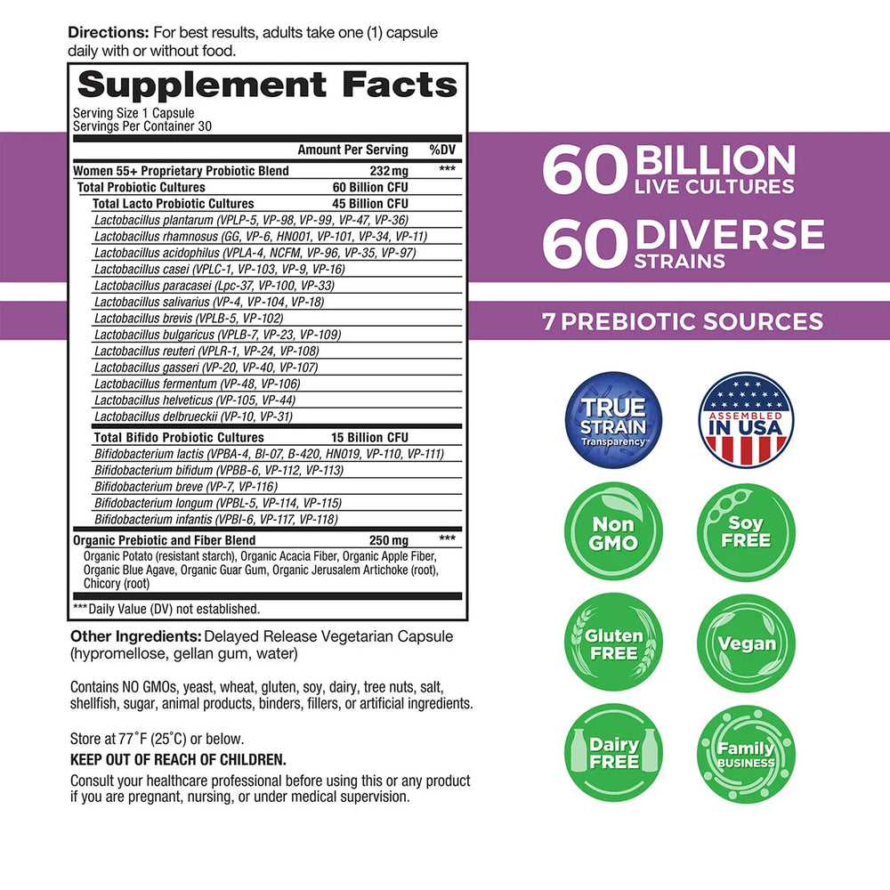 Vital Flora Women 55+ Daily Probioticis formulated by a woman for a woman aged 55+. This high potency, high strain diversity formula contains a specific ratio of beneficial bacteria that many women 55+ want.*